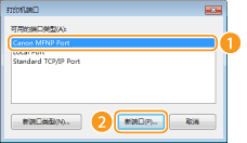 2 | 在 [可用的端口类型] 中选择 [Canon MFNP Port],然后单击 [新端口]。 |