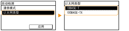 轻触 <10BASE-T> 或 <100BASE-TX>。