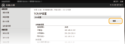 配置 IPv4 DNS1 | 单击 [IPv4设置] 中的 [编辑]。 ![]() |
