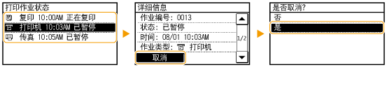 从远程用户界面的 [作业状态] 页面可以取消打印: