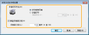 对于某些尺寸和类型的纸张,可能无法使用手册打印。可用于双面打印的纸张也可用于手册打印。请参阅 纸张。 |