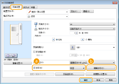 [页面设置] 选项卡 选中 [水印] 复选框  从下拉列表选择水印 [确定]