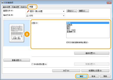 若要为在 [对象] 中选择的每个项目指定详细设置,请单击 [高级设置]。更多信息,请单击打印机驱动程序画面上的 [帮助]。
