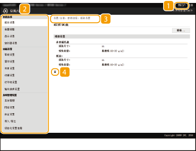 系统管理设置以系统管理员模式登录后,只能设置 [系统管理设置]。 当您已经登录到常规用户模式时,将只显示 [系统管理]。 |