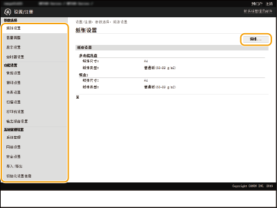 可通过使用远程用户界面更改各种机器设置。大多数设置也可在本机上设置,但是某些设置只可使用远程用户界面设置。