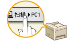 ![]() | 将一份文档放在本机上,然后轻触 <扫描->PC1> 或 <扫描->PC2>,扫描立即开始。扫描类型(彩色或黑白)、文档的保存目的地以及其他设置可以注册到一个按钮,并能使用这些设置扫描文档。本章节将介绍如何将设置注册到按钮中,并使用该按钮进行扫描。 |