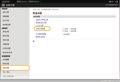 如果错误输入 IP 地址,则可能无法从远程用户界面访问本机,此时需要将 <IPv4地址筛选器> 或 <IPv6地址筛选器> 设置为 <关闭>。IPv4地址筛选器 IPv6地址筛选器