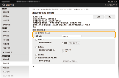 选择 [使用IEEE 802.1X] 复选框,在 [登录名称] 文本框中输入登录名称,然后指定所需设置。