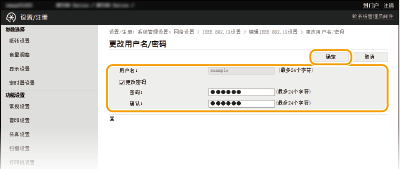 2 | 单击 [更改用户名/密码]。 若要指定登录名称以外的用户名,请取消选择 [将登录名称作为用户名使用] 复选框。如果想要将登录名称用作用户名,请选择此复选框。 |