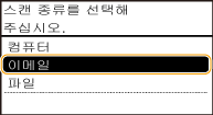 기기에서 바로 이메일로 전송하려면 메일 서버 설정 지정 등 모든 준비를 미리 마쳐야 합니다. 스캔 설정 구성(이메일 전송)