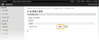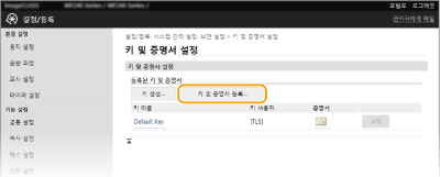 [키 및 증명서 등록] 또는 [CA 증명서 등록]을 클릭합니다.