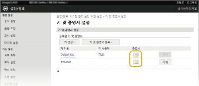 [보안 설정]  [키 및 증명서 설정] 또는 [CA 증명서 설정]을 클릭합니다.