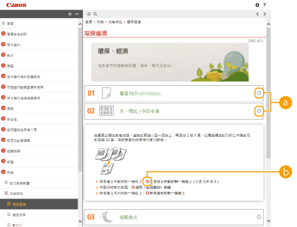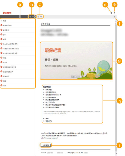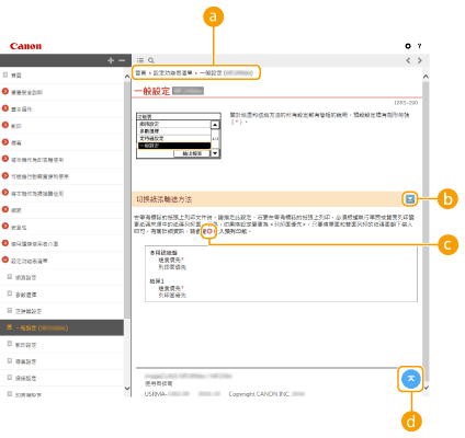 按一下將指定使用者指南的文字大小、版面和顯示方法等設定。