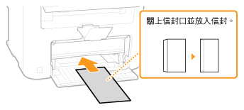 為紙匣和手動送紙槽同時以相同方向裝入信封。