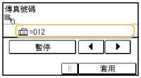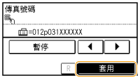 根據需要在傳真號碼末尾處點選 <暫停> 以插入暫停。