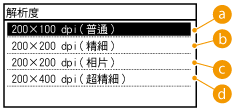 可以選擇適合文件類型的解析度。解析度越高,影像越清晰,但傳送時間也越長。
