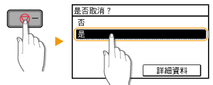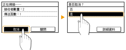 後立即取消傳送傳真,點選顯示器上的 <取消> 或按