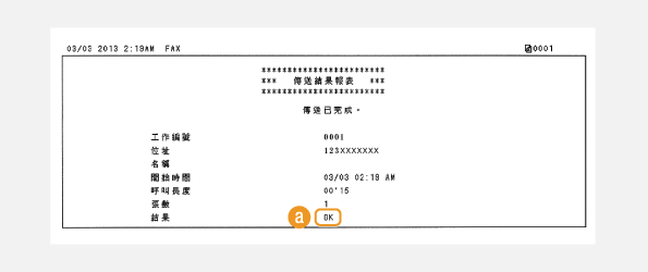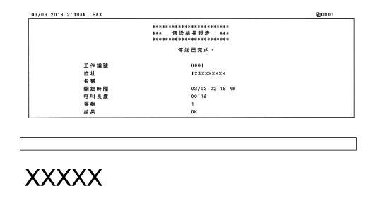 <傳真傳送結果報表> or <電子郵件/檔案傳送結果報表>