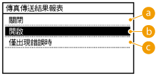 若要在每次傳送文件時列印傳送結果報表,請選擇此項。