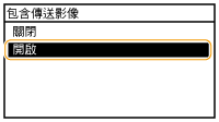 選擇 <開啟> 或 <僅出現錯誤時> 時,可以在報表中包含傳真文件的某個部份。點選 <包含傳送影像> 至 <開啟>。