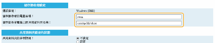 您也可以使用遠端使用者介面將共用資料夾註冊到通訊錄,指定共用資料夾位置做為儲存接收者。從遠端使用者介面註冊通訊錄