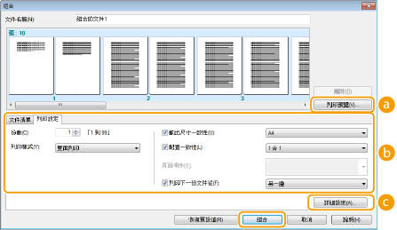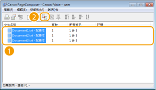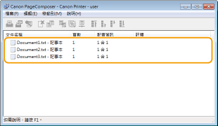 使用 Canon PageComposer 可以將多個文件合併成一個列印工作,並以指定的列印設定列印工作。例如,此功能可讓您合併以不同的應用程式製作的文件,並以相同的紙張尺寸列印所有頁面。