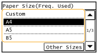 You can set the machine to display only frequently used paper sizes in the selection screen.