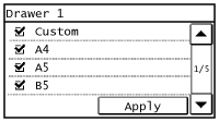 Uncheckmarked paper sizes are displayed in the <Paper Size (Other Sz.)> screen.
