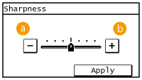 You can adjust sharpness of the copied image. Increase the sharpness to sharpen blurred text and lines, or decrease the sharpness to improve the appearance of magazine photos.