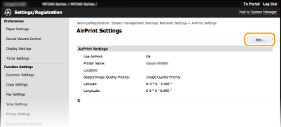 Enter the name and the installation location information to help you identify this machine when operating your Apple device. This information is useful if you have more than one AirPrint printer. Also select whether to give priority to print speed or to print quality.