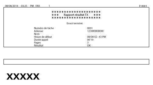 <Rapport résultat TX fax> ou <Rapport résultat TX e-mail/fichier>