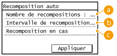 , jusqu'à 10 (fois)Intervalle de recomposition