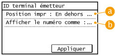 Si un écran de saisie du code PIN s'afficheSaisissez le code PIN à l'aide des touches numériques et appuyez sur <Appliquer>. Définition du PIN administrateur système