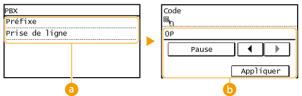 Sélectionnez <Préfixe> ou <Prise de ligne>