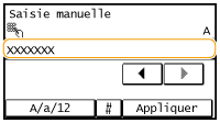 Indiquez la clé réseau à l'aide des touches numériques et appuyez sur <Appliquer>. Saisie du texte