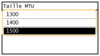 Dans la plupart des réseaux Ethernet, la taille maximale d'un paquet pouvant être envoyé est de 1 500 octets. Un paquet représente la portion des données selon laquelle les données d'origine sont divisées avant d'être envoyées. L'unité de transmission maximale (MTU) varie d'un réseau à l'autre. Modifiez les réglages de l'appareil au besoin. Pour plus d'informations, contactez votre administrateur réseau.