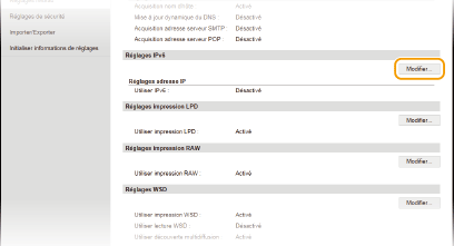 Cliquez sur [Modifier] dans [Réglages IPv6].