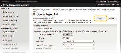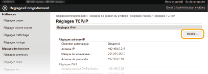 Cliquez sur [Modifier] dans [Réglages IPv4].