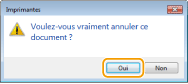Annulation à partir d'une applicationDans certaines applications, un écran similaire à celui qui est représenté ci-dessous apparaît. Vous pouvez annuler l'impression en cliquant sur [Annuler].