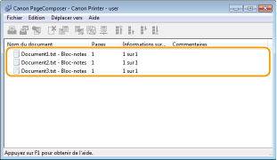 Canon PageComposer permet de combiner plusieurs documents en une seule tâche d'impression et de l'imprimer conformément aux réglages d'impression sélectionnés. Cette fonction permet ainsi de combiner des documents issus de différentes applications et d'imprimer toutes les pages au même format de papier.