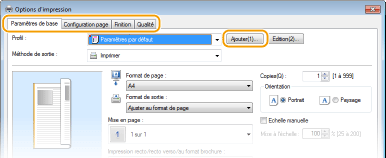 Modifiez les paramètres à enregistrer dans un profil, puis cliquez sur [Ajouter].