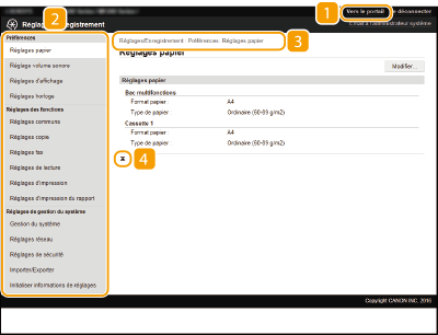 Vous ne pouvez définir [Réglages de gestion du système] que si vous êtes connecté en Mode administrateur système.