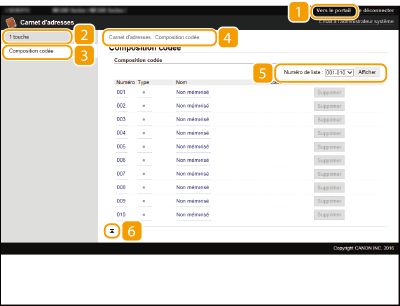 Spécifiez la plage des numéros de composition codée affichés sur la page.
