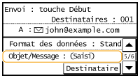 Appuyez sur <Objet/Message>.