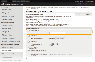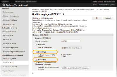 Cochez la case [Utiliser TTLS ] ou [Utiliser PEAP].