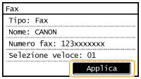 Toccare <Numero fax> o <Indirizzo e-mail>.