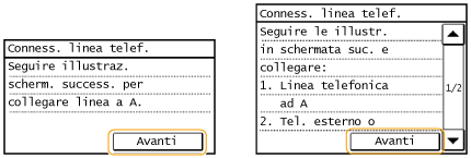 Toccare <Avanti> dopo aver collegato la linea telefonica.