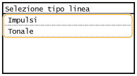 Seguire la procedura per impostare il tipo di linea telefonica. Se non si è sicuri del tipo di linea telefonica utilizzato, contattare la compagnia telefonica locale. <Selezione tipo linea> potrebbe non essere disponibile in base al paese in cui si utilizza la macchina.