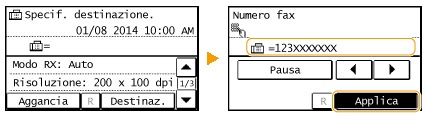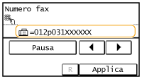 Toccare <Pausa> per inserire una pausa al termine del numero di fax se necessario.