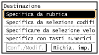 >Visualizza le destinazioni per l'invio di e-mail. Non utilizzare in questa procedura.